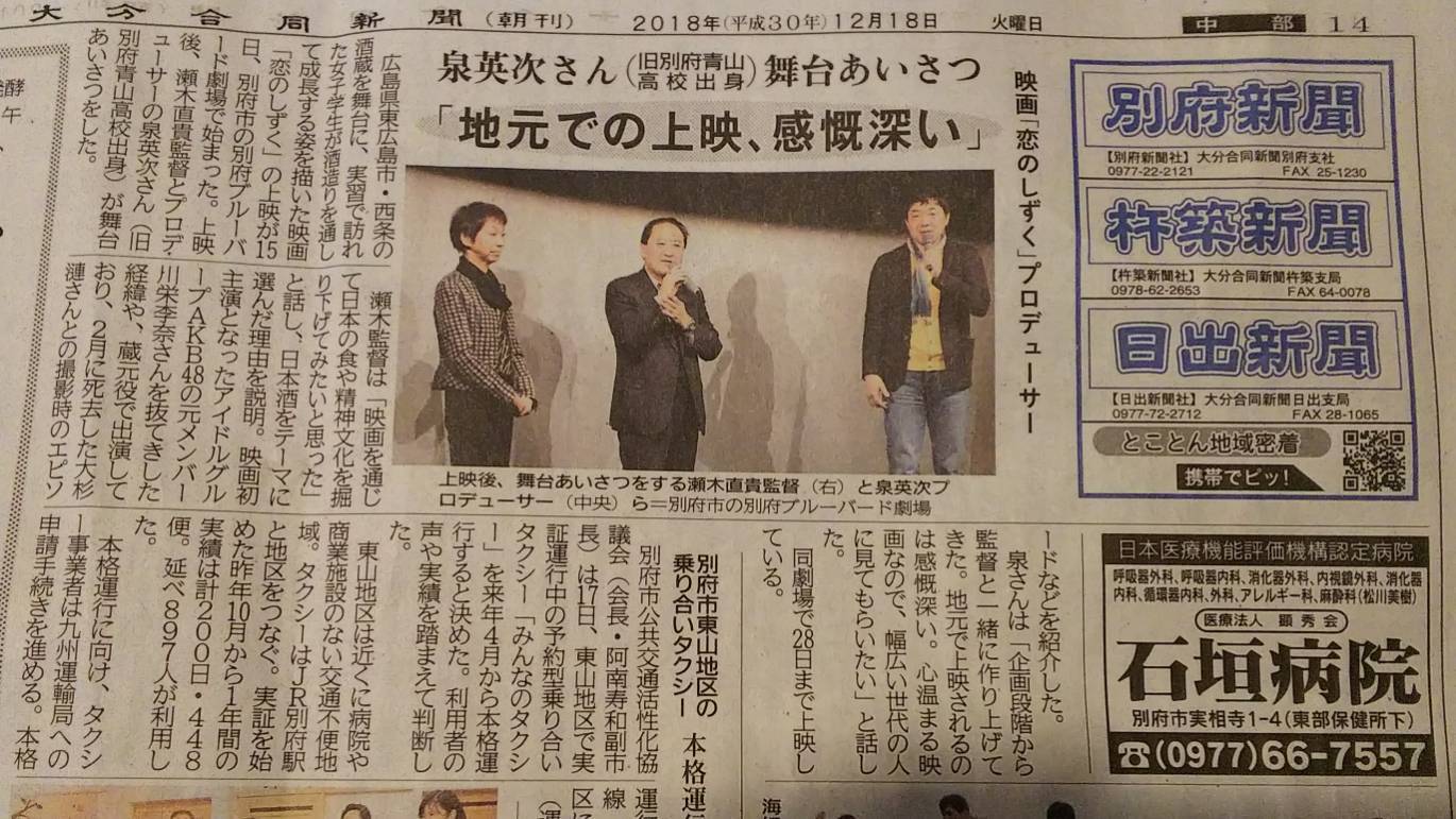 瀬木監督さん、別府ご出身のプロデューサー泉英次氏とご一緒に登壇させて頂きました。