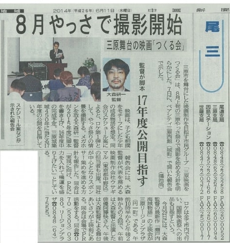三原築城450年を記念して、三原を舞台に映画が製作されます