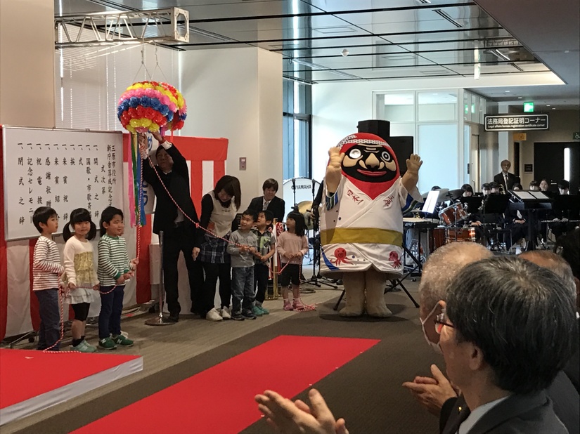 幼稚園児さんたちが、新庁舎落成をお祝してHappy Birthdayの歌をご披露されました。