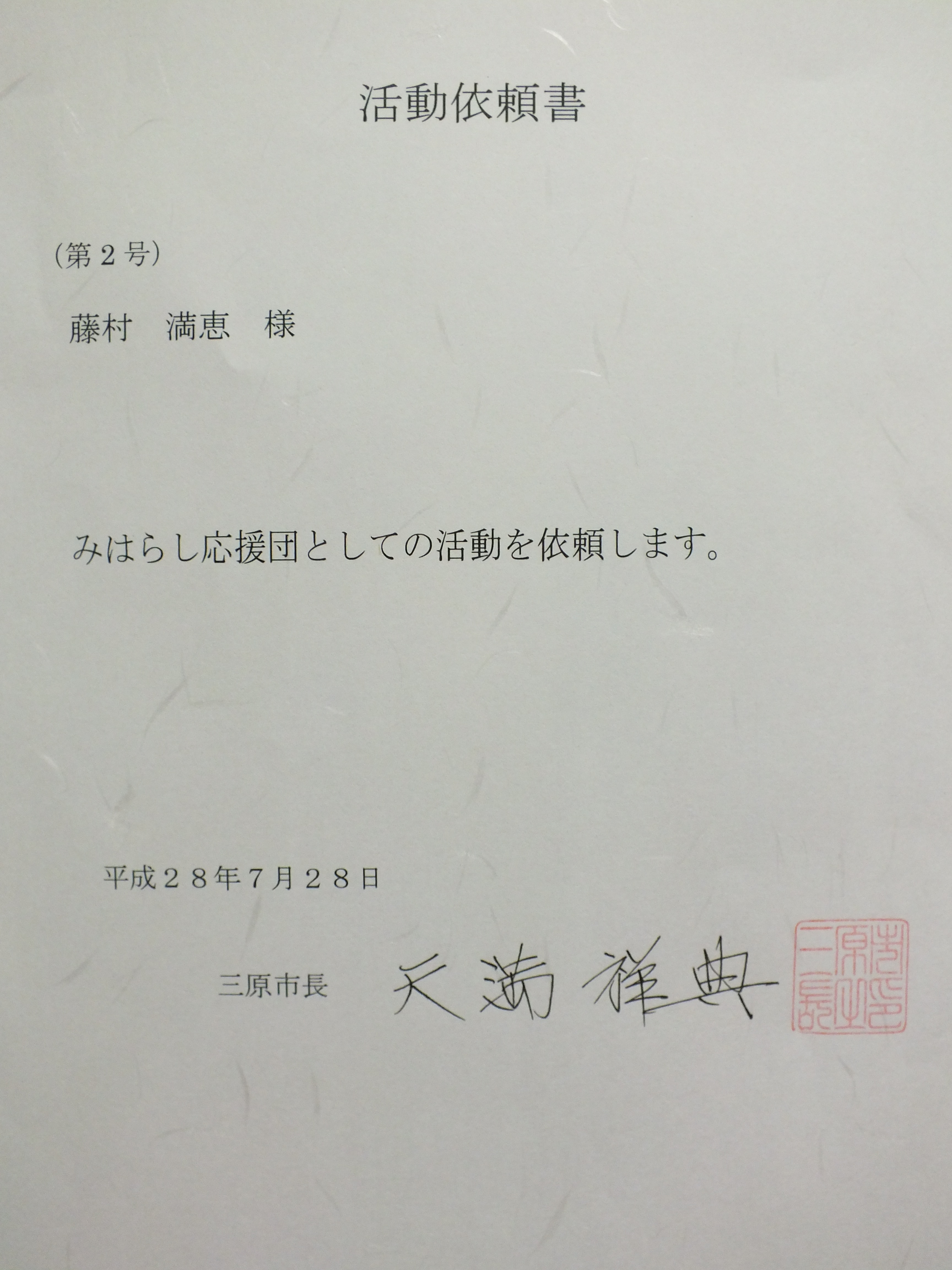 天満市長様から、私は第2号として活動のご依頼をお受けしました。