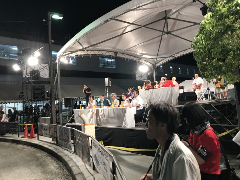 初日のやっさ祭り踊り部門,各賞を審査される審査員の方々の表情は真剣です。