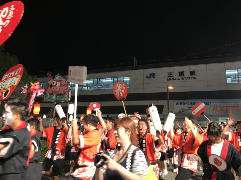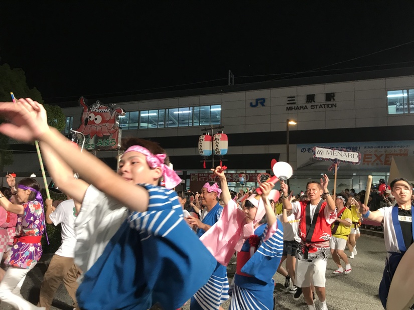 皆さん、汗をかき夏の三原やっさ祭りを満喫されています。
