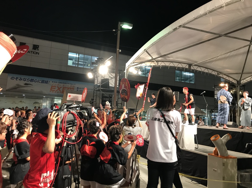 今年のやっさ祭り、メイン会場は三原駅ロータリー内です。