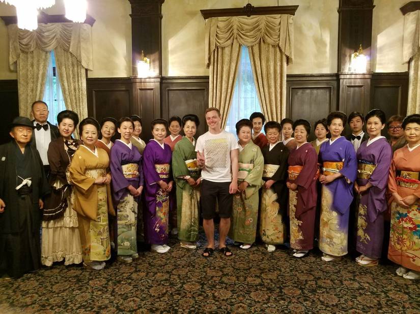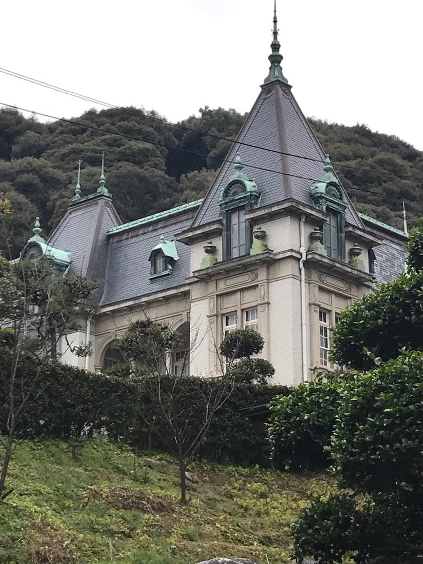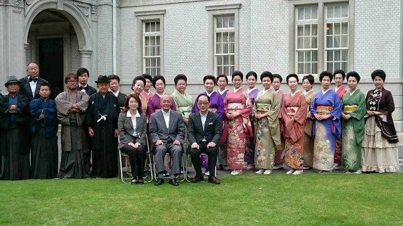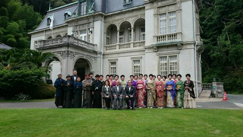 撮影に前に「萬翠荘」をバックに記念撮影しました。