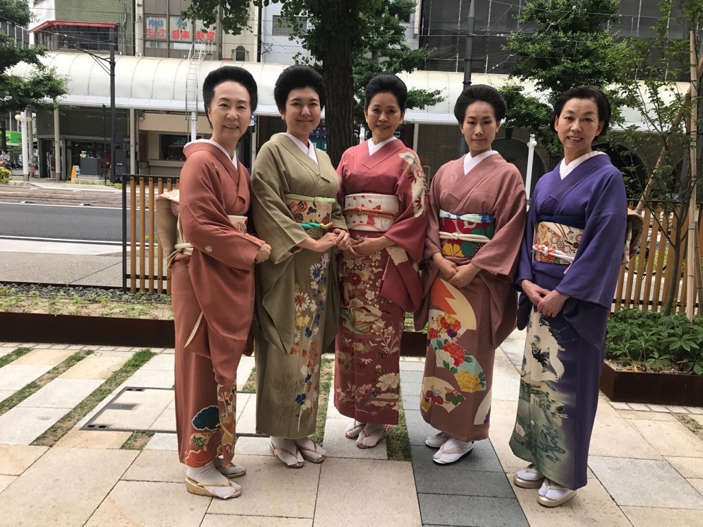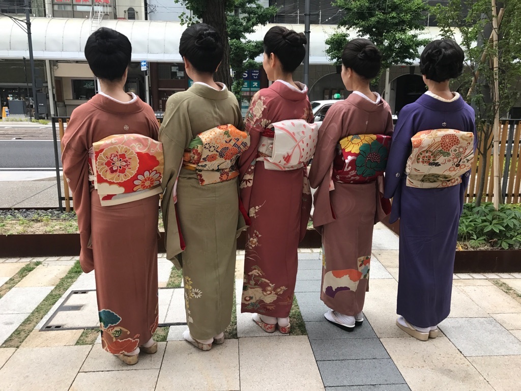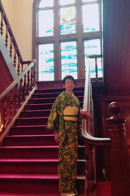 衣装担当の方に、昭和の着物を着付けしていただき、美容担当の方にショートの髪をアップにして頂ました。