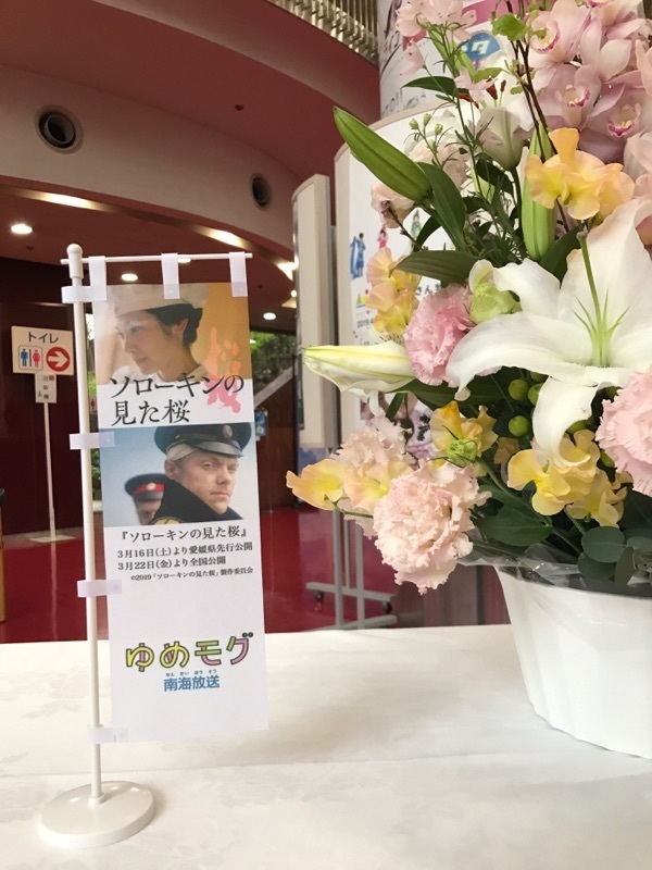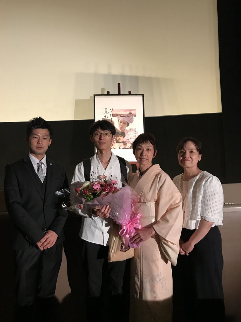 8月31日(土)福山シネマモードで映画「ソローキンの見た桜」が上映され、上映後、益田プロデューサー様、TVカメラマン役の杉作J太郎氏、市長役の対馬一誠氏と私で舞台挨拶をさせていただきました。
