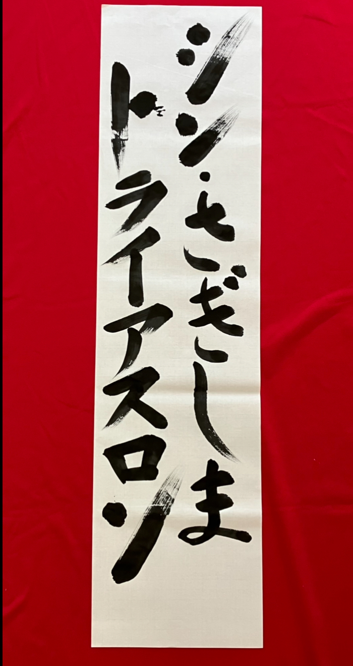 ポスター、Tシャツ、記念タオルの筆文字を揮毫させていただきました。
