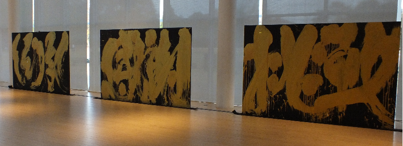 太鼓ユニット我龍様による、「龍の淵」が15分間演奏され私はステージ上で横幅約3mの作品3枚揮毫致しました。