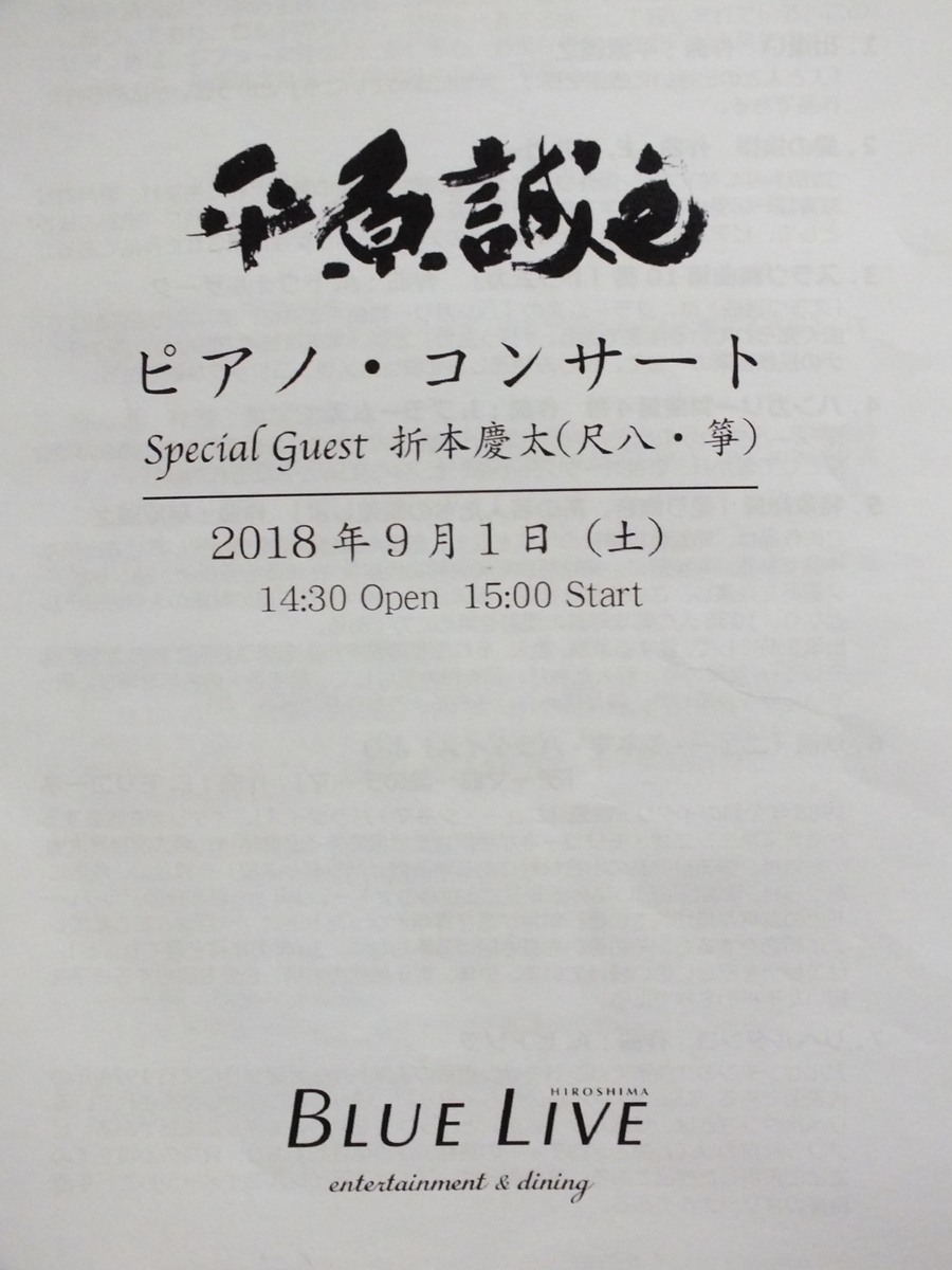 ブルーライブ広島・平原誠之ピアノコンサート~Special Guest 折本慶太と共に~