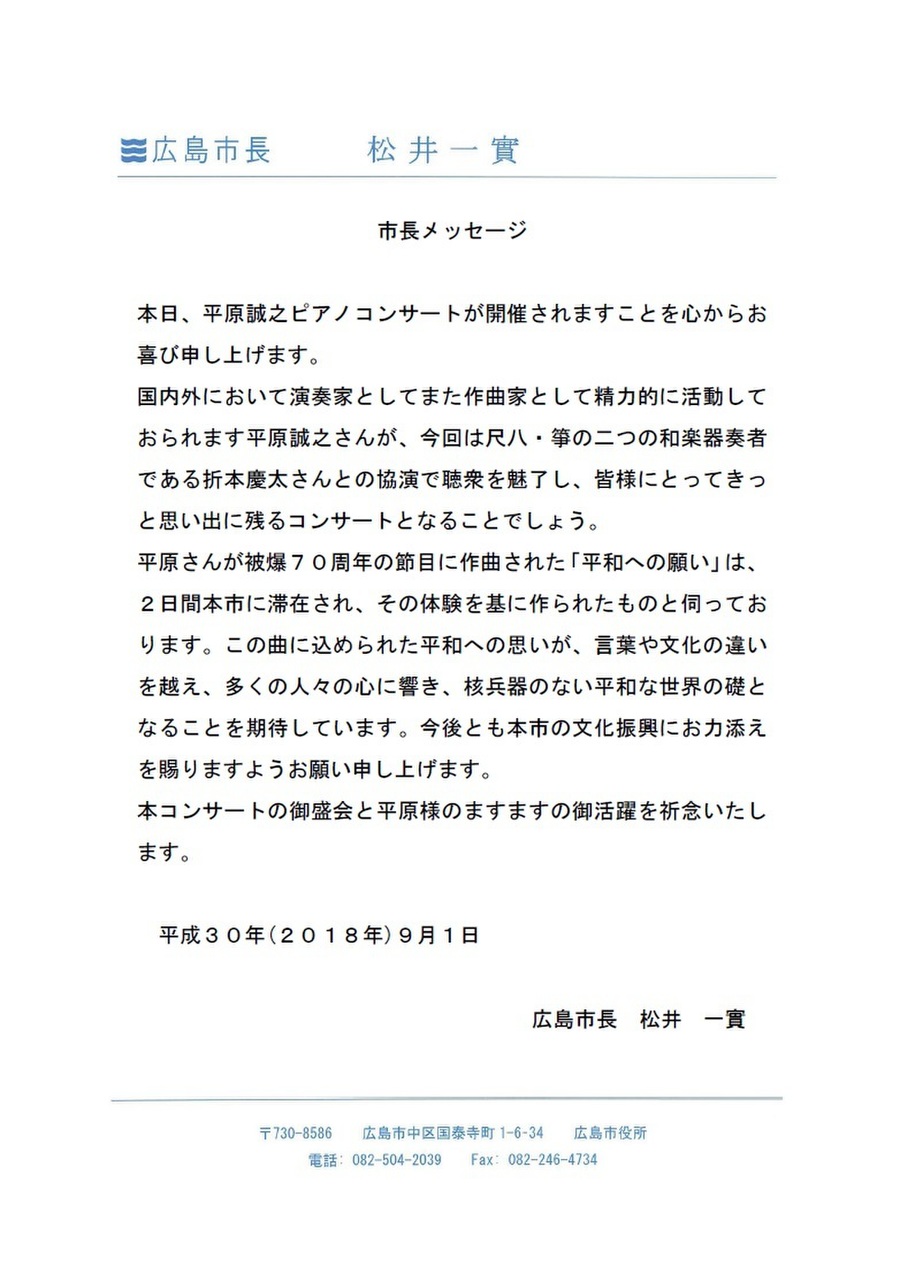 松井広島市長様のメッセージです。
