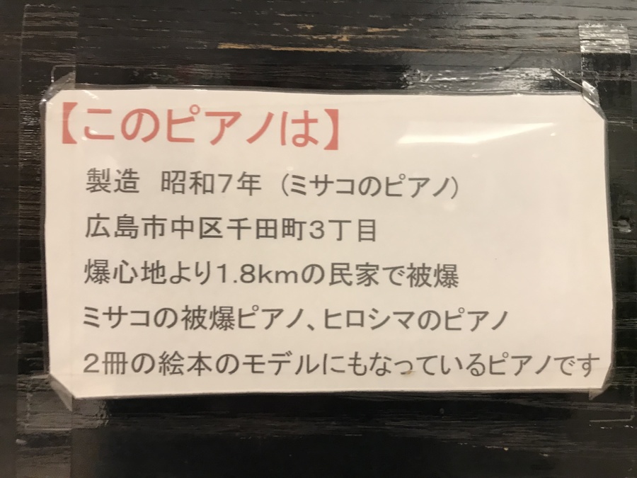 コンサート前に、矢川氏から被爆ピアノのご説明と2020年5月八丁座で先行上映される五藤利弘監督映画「おかあさんの被爆ピアノ」のご案内がありました。