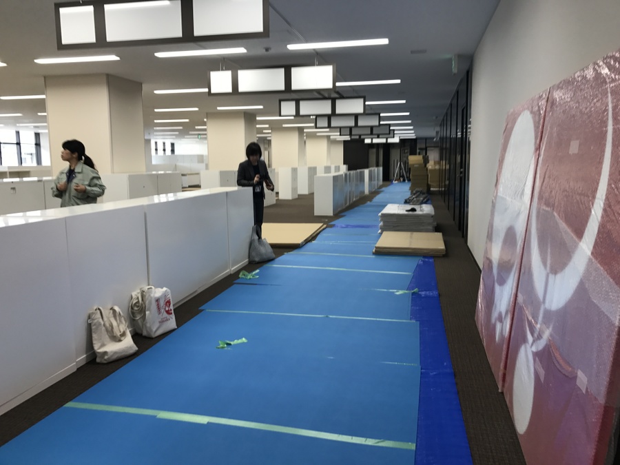 2019年4月11日、どこの階もビニールシートが床へ敷き詰められていました。
