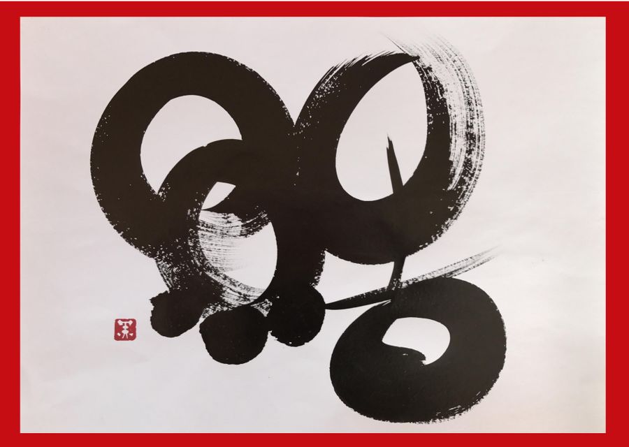 これは、私が考案した「ニュースペーパー・カリグラフィー」新聞紙を筆代わりにして描いた作品です。