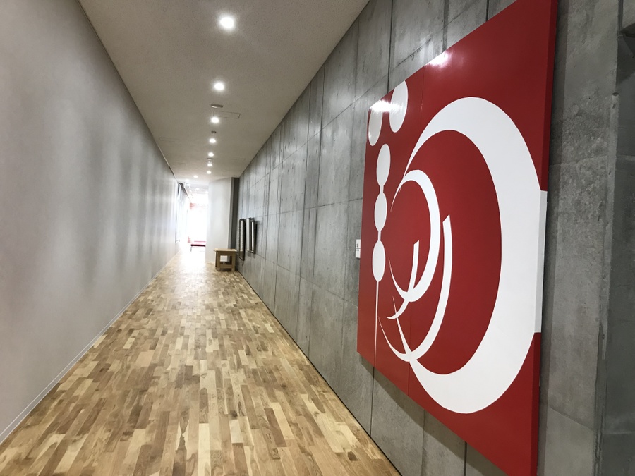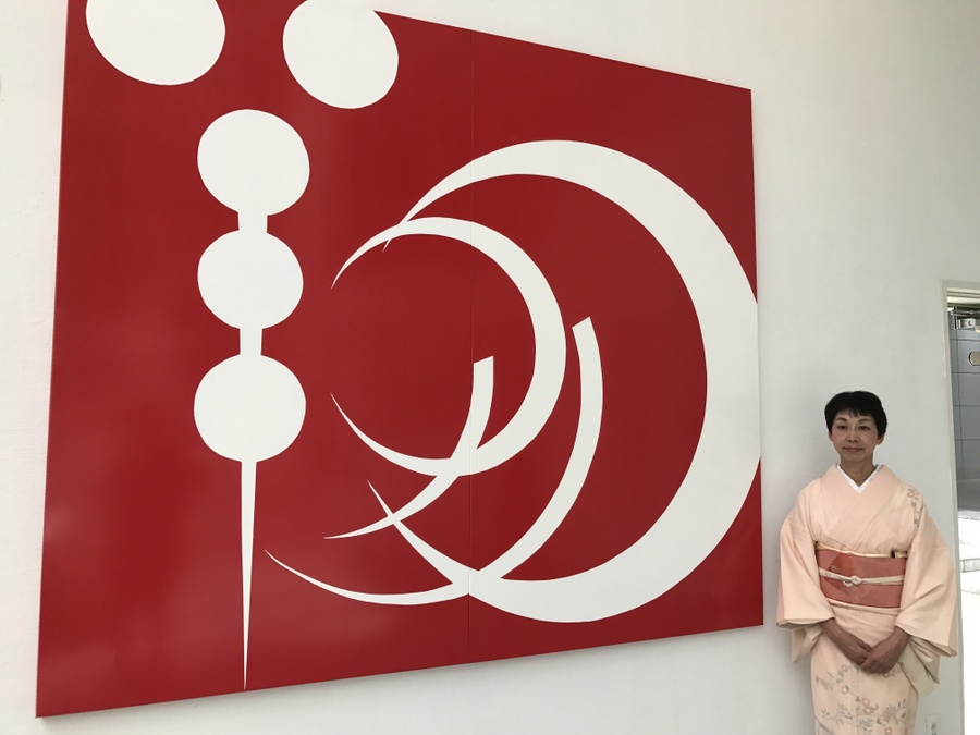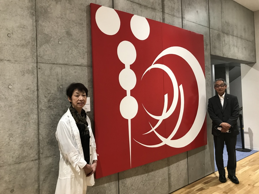 坂町サンスターホールへ寄贈させて頂いた作品は、太陽を思わせるような未来へ繋がるイメージで描いた「楽」の作品です。