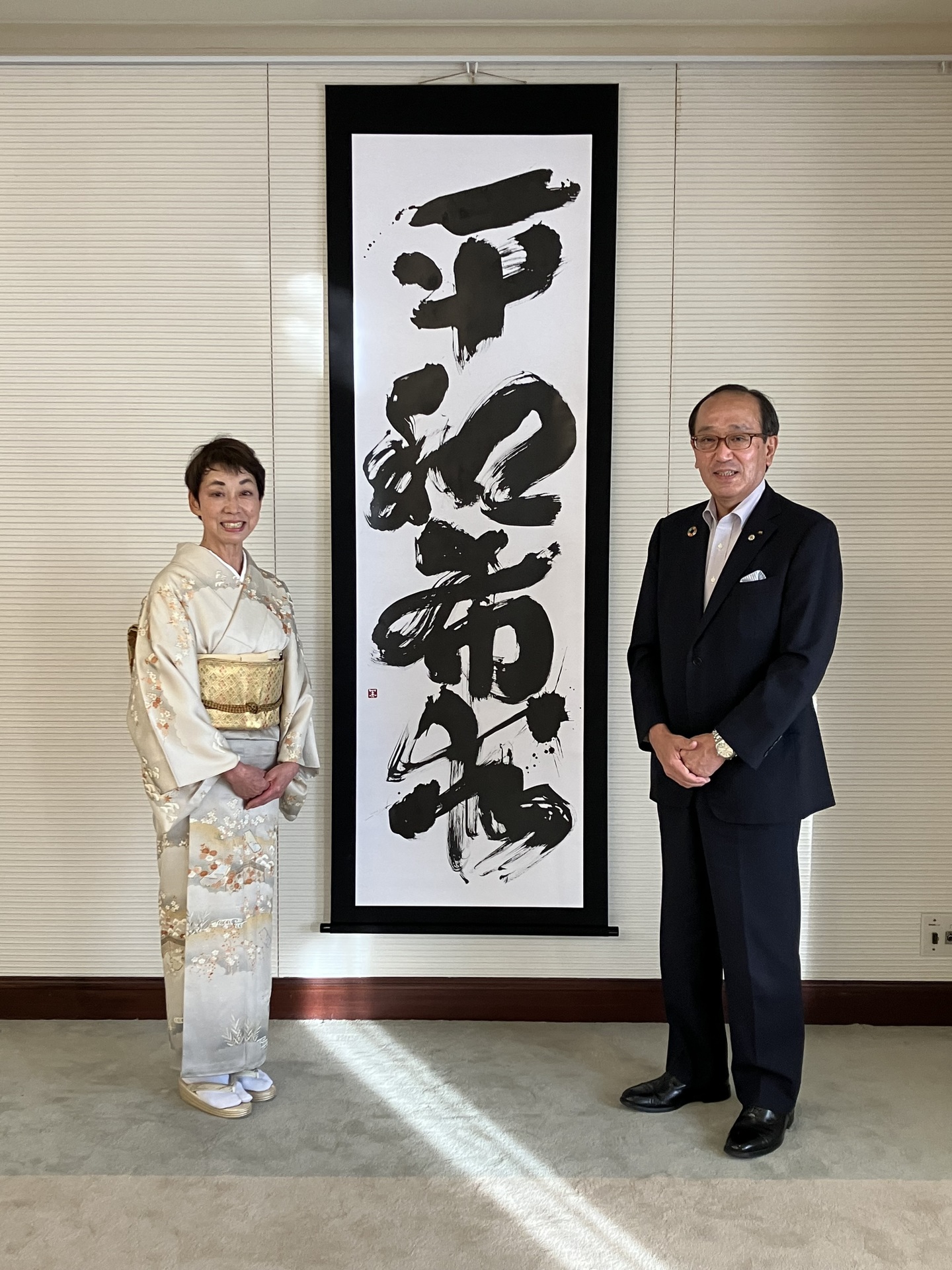 掛け軸は、平和を会議する「市長応接室2」へ展示されました。