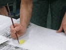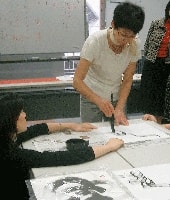 書の作品を短時間に完成させるため「ニュース・ペーパーカリグラフィー」を伝授します。