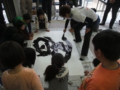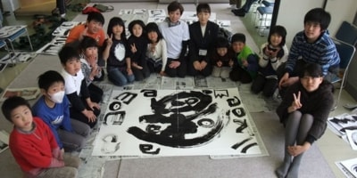 「ヒロシマ・フクシマ」アート交流の一環で行なわれたニュースペーパー・カリグラフィー
