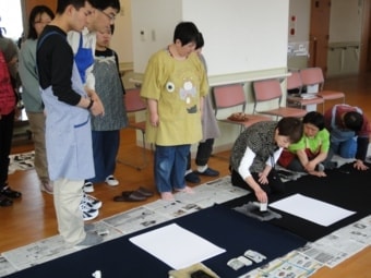 かしの木学園で「ニュースペーパー・カリグラフィー」講座をしました