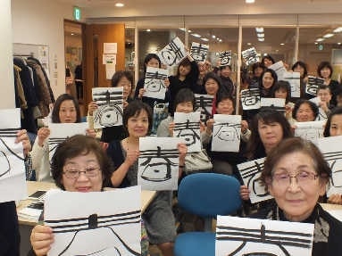正しく持って書くことを習得ご自分のお好きな漢字一文字を、白い大きな紙にお1人お1人の手を持ちご指導させて頂きました。