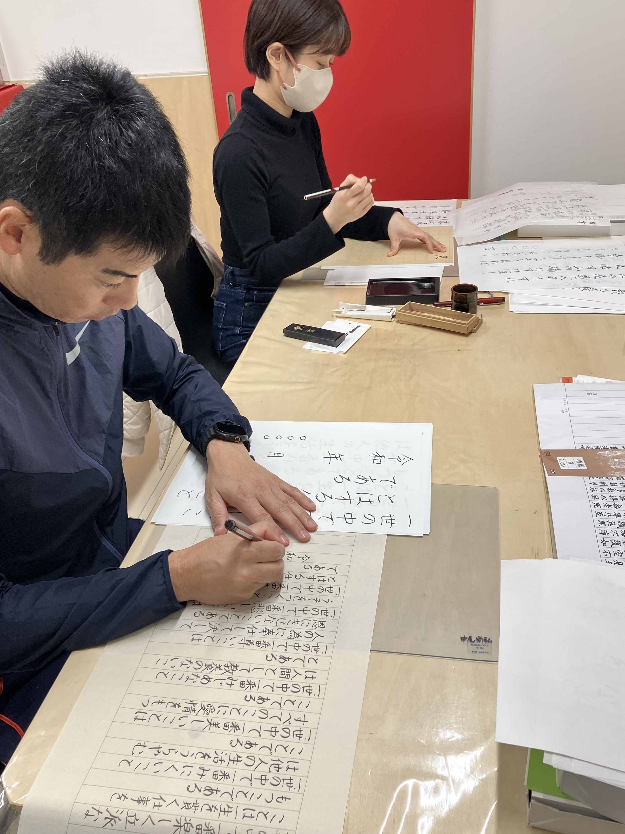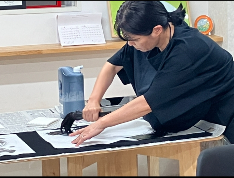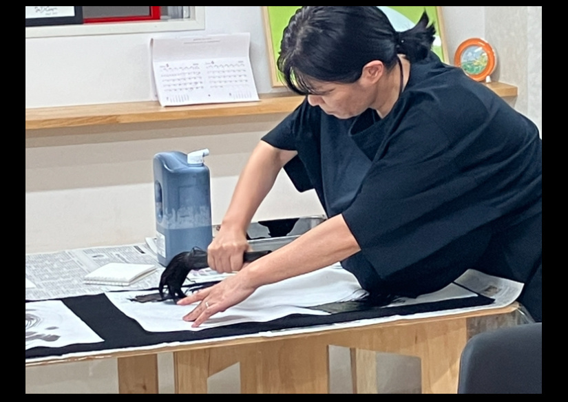 フランス人のマリー・アランさんと金平さんが前衛書道を体験されました。