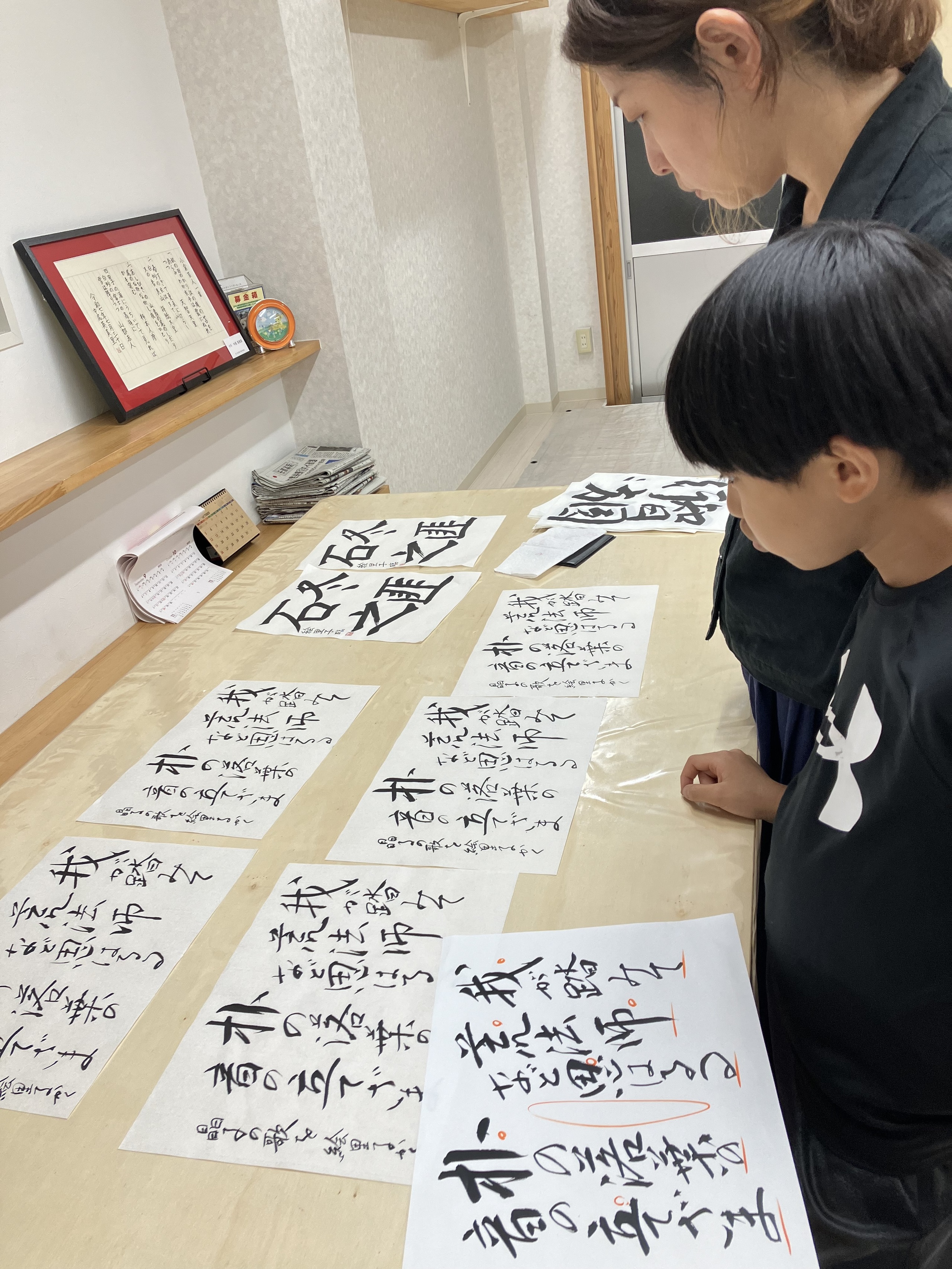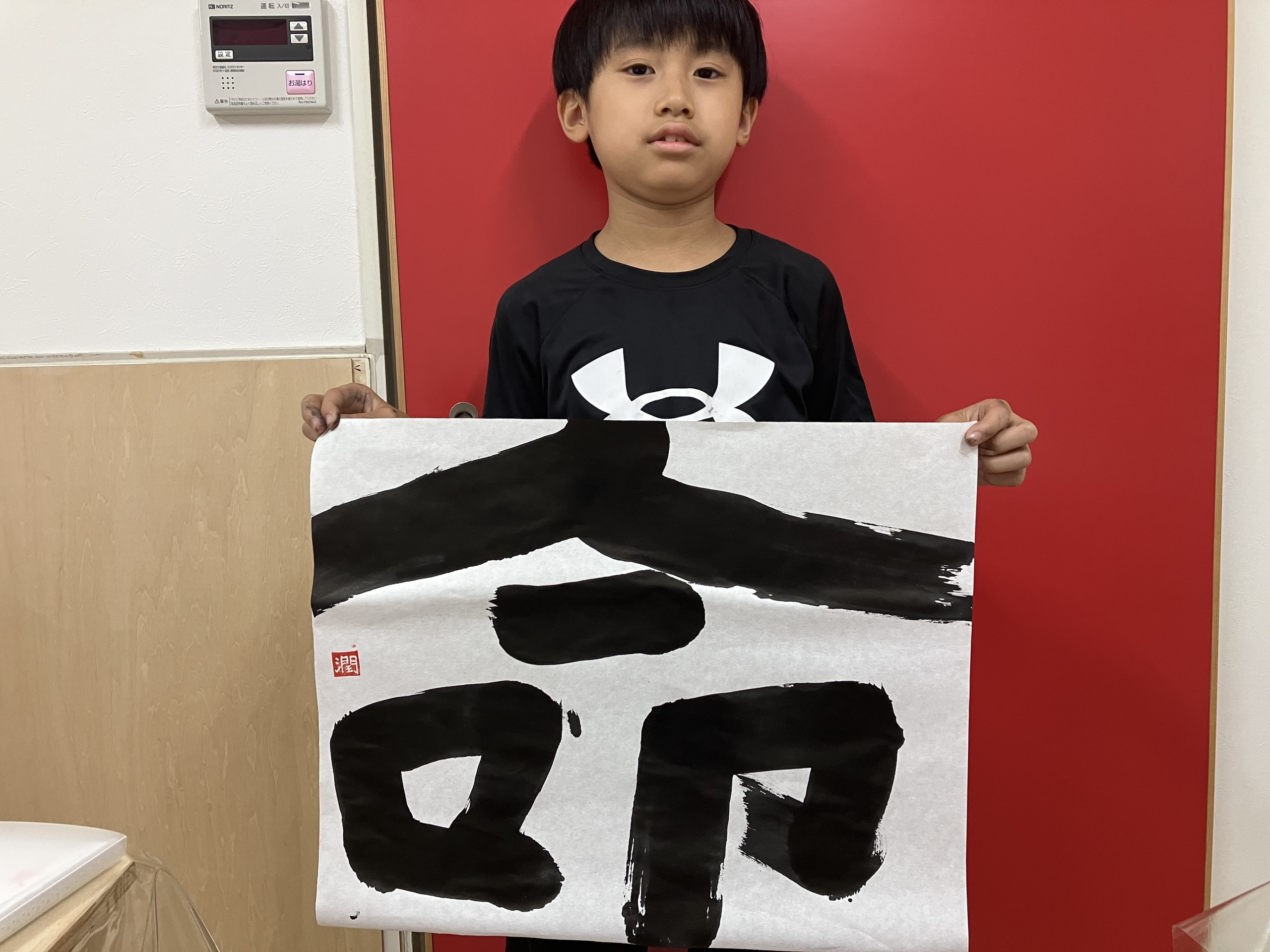 年長さんのゆなちゃんとゆなちゃんのお祖母様が前衛書道を受講されました。