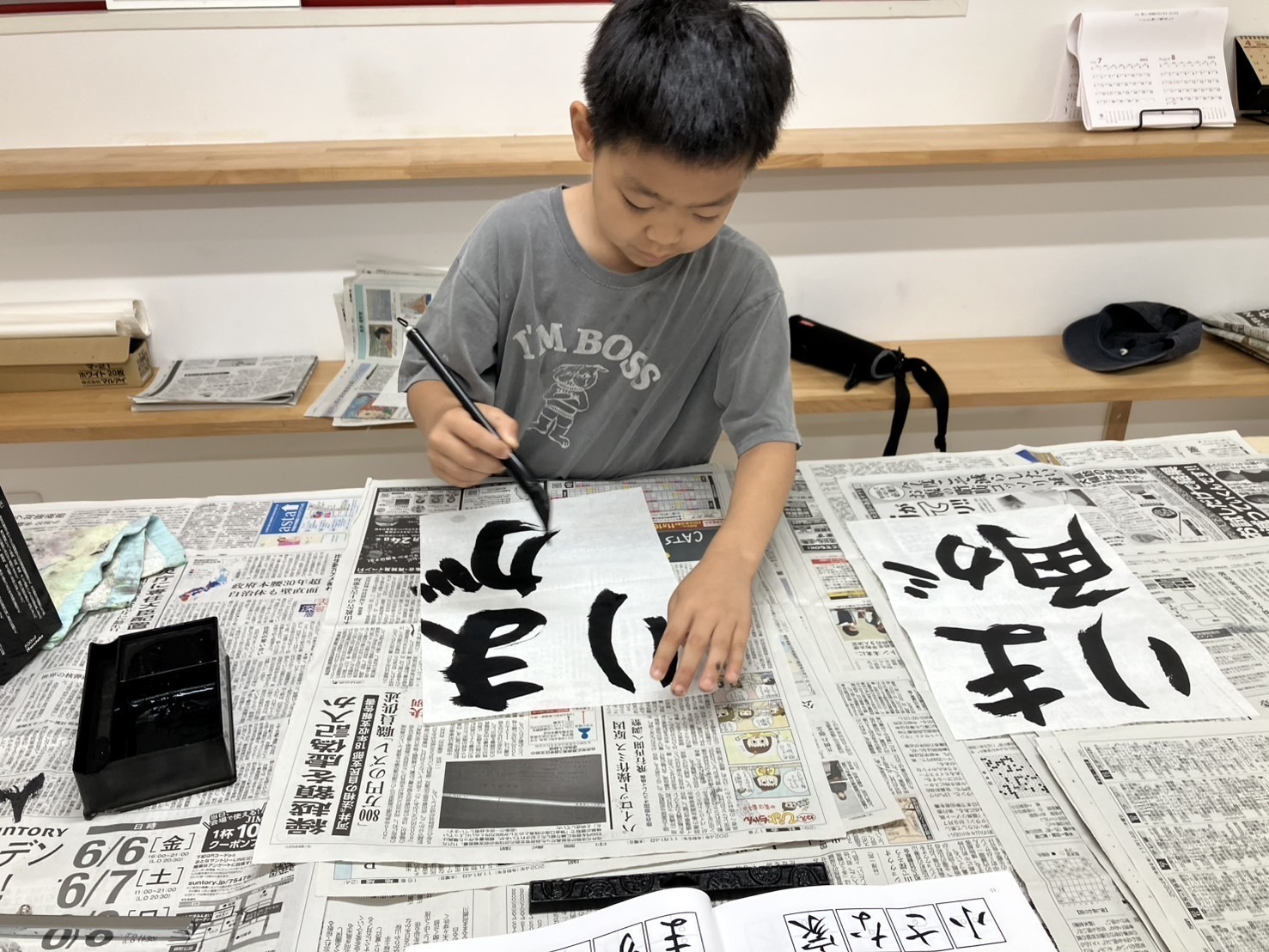3回目の出稽古で、正しく筆運びができ作品作りを楽しんでもらっています。