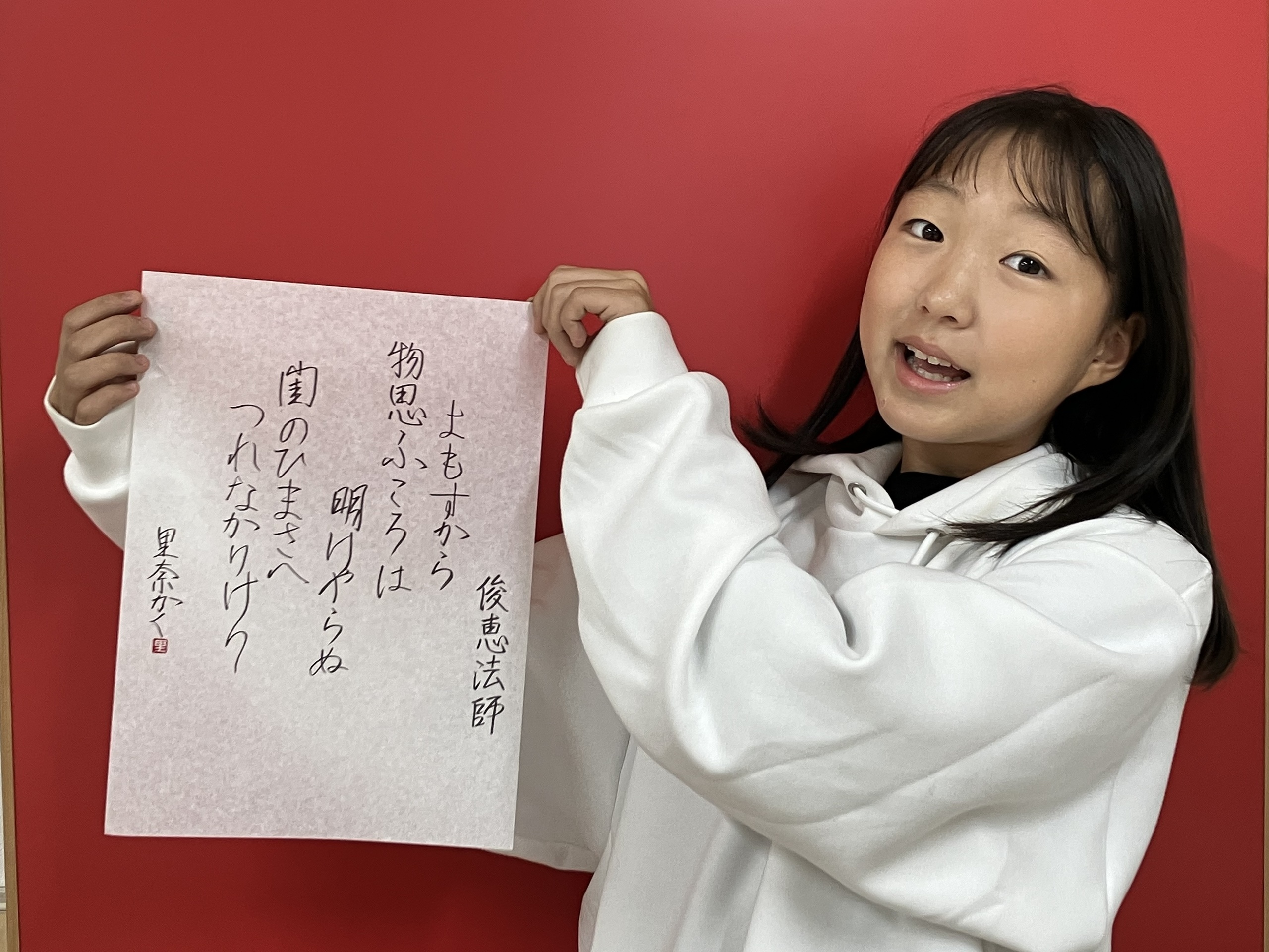小学校2年生の里奈ちゃんは、さばき筆で毛筆を楽しまれています。