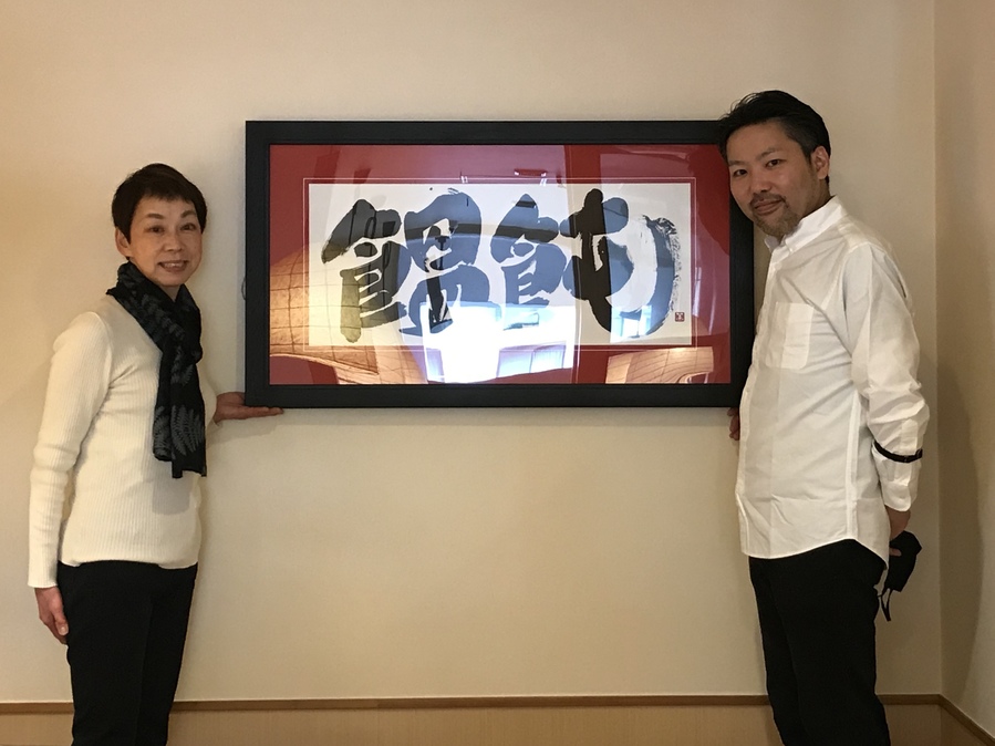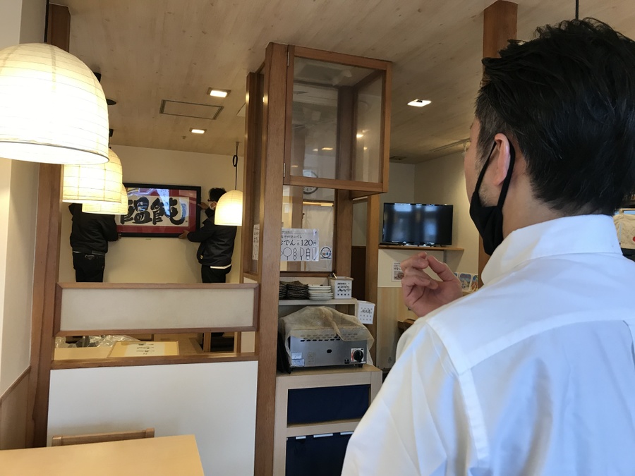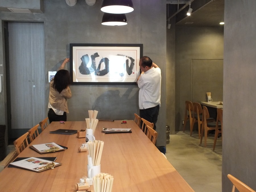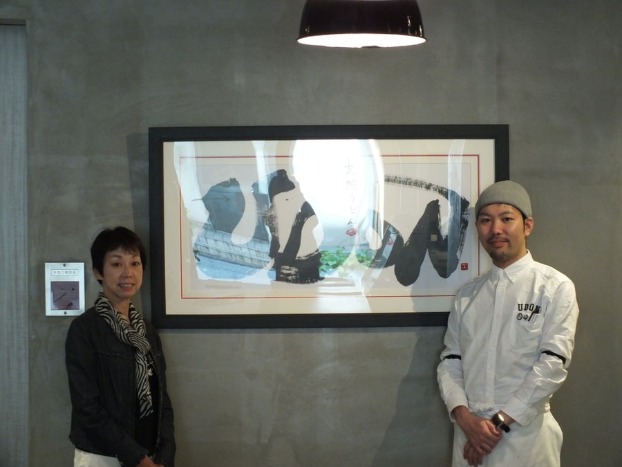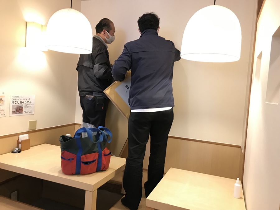 太閤うどん宇品本店へ作品「饂飩」を搬入
