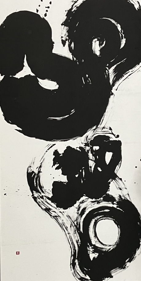 ギャラリー2階へ上がる階段の正面に展示。一目ぼれ。購入者は「樹遊」(きゆう)の若大将。 お店は、安芸郡府中町浜田。新鮮な魚介類を美味しく手際よく料理するのが得意! 今年,開店5周年。もう直ぐ、表の暖簾も勢いある前衛書になります。